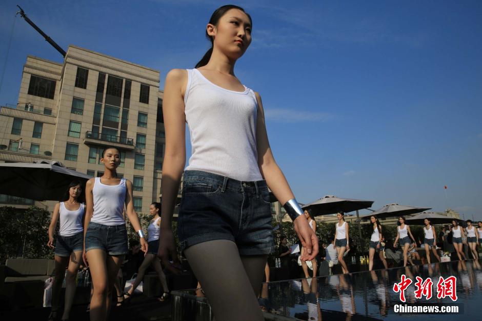 10月10日,42位参加2014上海国际模特大赛总决赛的选手首次公开亮相上海设计师沙龙,接受上海时装周知名设计师吉承、王大诚等的挑选,部分优秀新锐模特将直接被“预订”,参加本季2015上海春夏时装周秀演。上海国际模特大赛总决赛将于10月24日晚举行。潘索菲 摄
