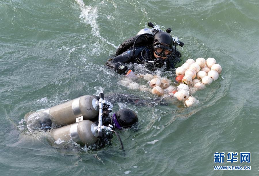 10月10日,潜水员对水下沉船进行考古测绘。当日,在河北唐山海港经济开发区,我国第一艘专业考古船正式启动对晚清时期铜皮夹板沉船的水下考古工作。据国家文物局水下文化遗产保护中心主任柴晓明透露,此次水下考古是“中国考古01号”投入使用以来首航第二站,是在河北开展水下考古实质性工作的第一战,填补了河北滨海和环渤海水下考古的空白,将对探寻我国北方古代港口的变迁沿革等产生重要的推动作用。新华社发(董钧 摄)