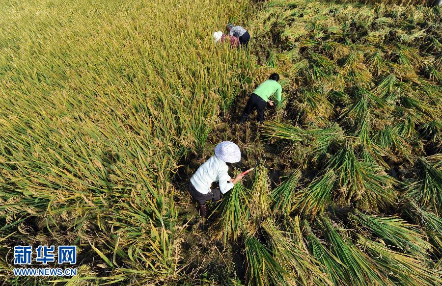 10月10日,在湖南省溆浦县横板桥乡红星村,袁隆平在现场召开的新闻发布会上回答记者提问。 10月10日,农业部委派的专家组对湖南省溆浦县横板桥乡红星村的超级杂交稻“Y两优900”进行现场测产验收,通过随机抽样测得平均亩产1026.70公斤,这标志着“杂交水稻之父”袁隆平领衔的我国超级杂交稻第四期亩产千公斤攻关取得成功,也标志着我国杂交水稻育种技术再上新台阶,对我国粮食安全保障具有积极意义。从2000年第一期目标的亩产700公斤、2004年第二期的亩产800公斤、2011年第三期亩产926.6公斤,到2014年的亩产1026.70公斤,我国杂交水稻育种研究在14年里取得了令世界瞩目的“四连跳”。业内人士认为,超级杂交稻未来的发展前景取决于两个方面,一是实际推广的效果。二是育种技术的发展。本次测产验收的专家组组长、中国水稻所所长程式华表示:“随着第四期目标的实现,意味着我国杂交水稻育种技术又提升了一个档次。可以肯定的是,以企业为主体的整个商业化育种水平会紧跟其后。杂交水稻在推广过程中还需要简化种植技术,确立一套适合大田栽培的方法,并对农民进行培训。”超级杂交稻的普及推广将是一个综合性的工程。新华社记者 李尕 摄