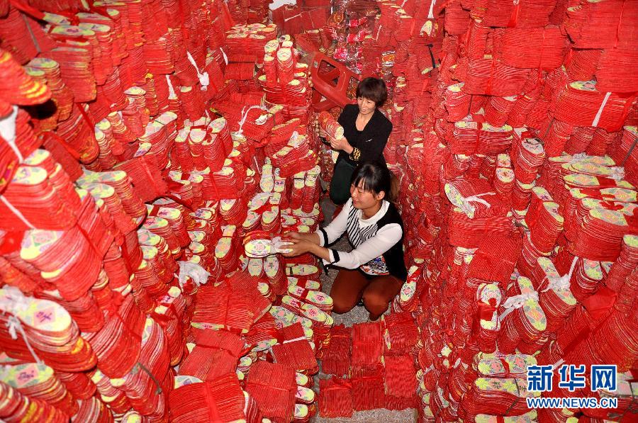 10月10日,在山东省沂源县南鲁山镇黄崖村一鞋垫加工企业,工人们在整理加工的鞋垫。随着天气转凉,山东省沂源县的鞋垫加工企业迎来生产销售的旺季,各企业加紧生产,满足市场供应。近年来,工艺鞋垫逐渐走向市场。山东省沂源县的一些企业立足这一传统工艺,大力发展鞋垫生产加工。以工厂化生产、企业化运作的模式,使沂蒙工艺鞋垫从农家女的“针线笸箩”走向大市场。目前,全县鞋垫企业发展到30余家,从业人员达到5000余人,所加工的各类工艺鞋垫销往全国各地,成为当地农家女增收致富的特色产业之一。新华社发(赵东山 摄)