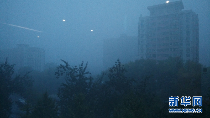 10月11日早上,北京城区笼罩在雾霾之中。图为机动车在宣武门西大街缓慢行驶。当日,北京持续出现雾霾天气,预计此次雾霾过程将持续至11日晚上。新华网记者 李志强摄