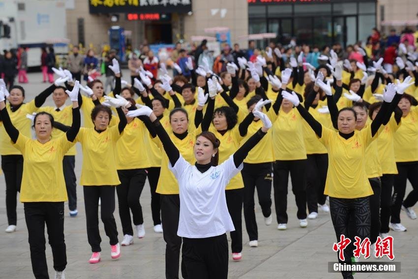10月12日上午,来自吉林市16个社区的16支舞蹈队、近5000名广场舞爱好者公开秀演。比赛中,伴随着动感的广场舞音乐,近5000名舞者轮番上场,场面甚为壮观。此次大赛,获奖的社区将共获得26万元的酬奖。苍雁 摄