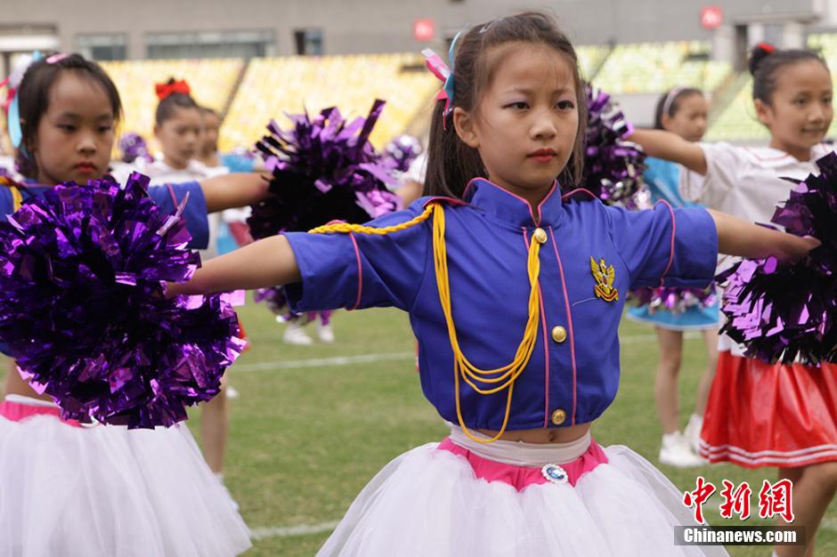 10月11日,由国家教育部体卫艺司和国家体育总局体操运动管理中心牵头举办的全国首个“足球、啦啦操”进校园实验区活动11日在江苏江阴揭牌,全国啦啦操委员会等单位协助支持了该项活动。来自江阴的62所中小学的1200多名学生来到江阴市体育中心,现场带了一段精彩的啦啦操表演。据悉,江阴的76所中小学从2013年就基本做到“一球一操(队)”,其中25所学校还成立了女子足球队,近10万中小学生参加了校园足球和校园啦啦操项目。孙权 摄