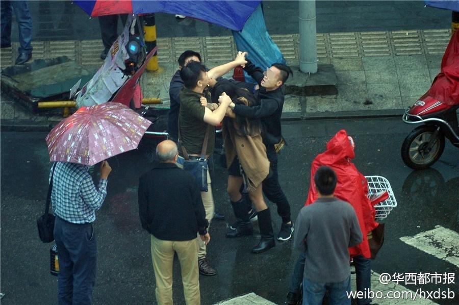 据《华西都市报》微博10月11日报道,高峰期打车难,下雨天打车更难。今日下午6点左右,在成都市区梓潼桥正街,一对男女与另外一名男子因为争抢出租车发生口角,随后两名男子更是拳脚相加,扭打在一起。最后在路人的劝说下,双方收手,不欢而散。为了一点小事就大打出手,这样还是欠考虑啊。来源:《华西都市报》微博