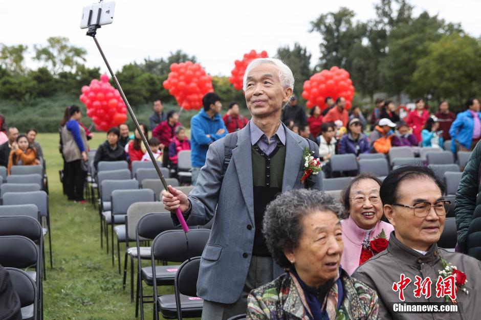 北京百余老人庆金婚 “自拍神器”记录幸福瞬间