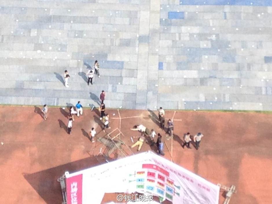 今天(10月12日)中午12点多,读者周先生报料:黄龙体育中心脚手架倒塌,一死一伤。