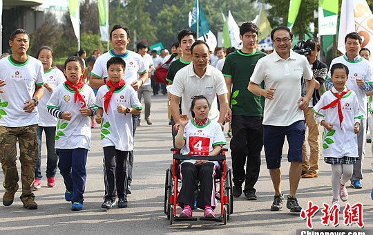 10月12日,由江苏省体育局和团省委联合主办的2014江苏·南京长跑节在南京举行,吸引了8000多名健身爱好者前来参加。今年的江苏长跑节活动突破了往年倡导绿色低碳的单一体育主题,将运动与慈善、健身与奉献有机结合,参与者们在完成了6公里的奔跑后,随即怀着极大的热情投入到“爱心义卖”、“活力派对”等嘉年华活动中,在奉献爱心、观看表演、参与游戏中尽情抒发运动激情、助力残疾青少年成长。现场所筹的义卖善款全部捐赠给江苏省青少年发展基金会的“阳光助残”青年志愿服务公益基金,为残疾人(以青少年为主体)的生理与心理康复提供帮助。