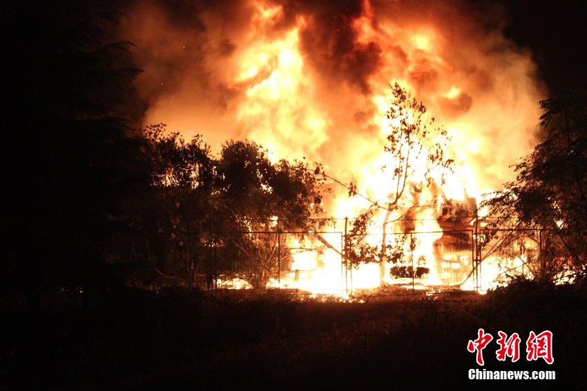 2014年10月12日消息,江苏丹阳,“沪蓉高速(丹阳)窦庄服务区几公里处车祸爆炸!”12日凌晨时分,记者接到丹阳资深网友、“翼网”版主“华英雄”的报料,并称火势凶猛情景吓人,宛如美国灾难大片。昨天上午,扬子晚报记者从镇江高速一大队获悉,车祸事故发生在11日深夜近10时,直至当晚11时30分许才处置完毕。让人意外的是,事故引发的冲天大火中,两名司乘人员却能及时逃生,更离奇的是,竟然还“均未受伤”,但货车本身及车载的大量塑料粒子,则损毁严重。图片来源:CFP视觉中国