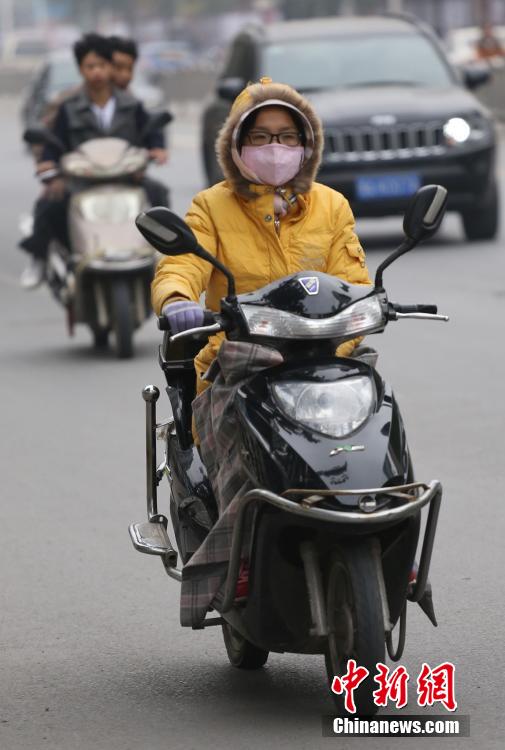 10月13日,郑州街头,市民穿着厚厚的冬装在街头骑行。12日起,受西北强冷空气影响,河南各地迎来大风降温天气,气温大幅下降,市民出行换上了厚厚的冬装。同时,在冷空气的袭击下,华北黄淮等地持续了多日的霾散去。杨正华 摄