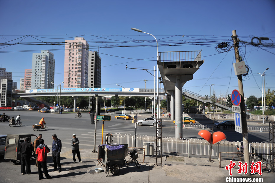 10月13日消息,马家堡东路与北京南站路和革新南路交会路口的过街天桥修了6年都没修好,没有阶梯的“断头桥”悬在半空,至今行人来往都只能从桥下车流中穿行。天桥建设单位公联公司表示,工程停滞是因近旁底商拆迁不成而阻碍立柱建设,目前仍待相关部门协调,一旦条件成熟将尽快完成施工。中新网记者 金硕 摄