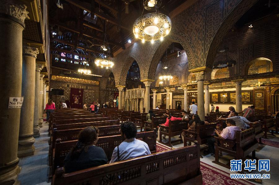 10月12日,在埃及首都开罗,游客和信众在“悬空教堂”内。 “悬空教堂”历经十六年的整修后于10月11日重新向公众开放。据了解,位于埃及首都开罗科普特区的“悬空教堂”始建于公元4至5世纪,是科普特教最重要的建筑之一。“悬空教堂”因其建筑于一处古代要塞入口之上而得名,同时,由于人们需登上阶梯进入主堂,它也被称为“阶梯教堂”。新华社记者潘超越摄