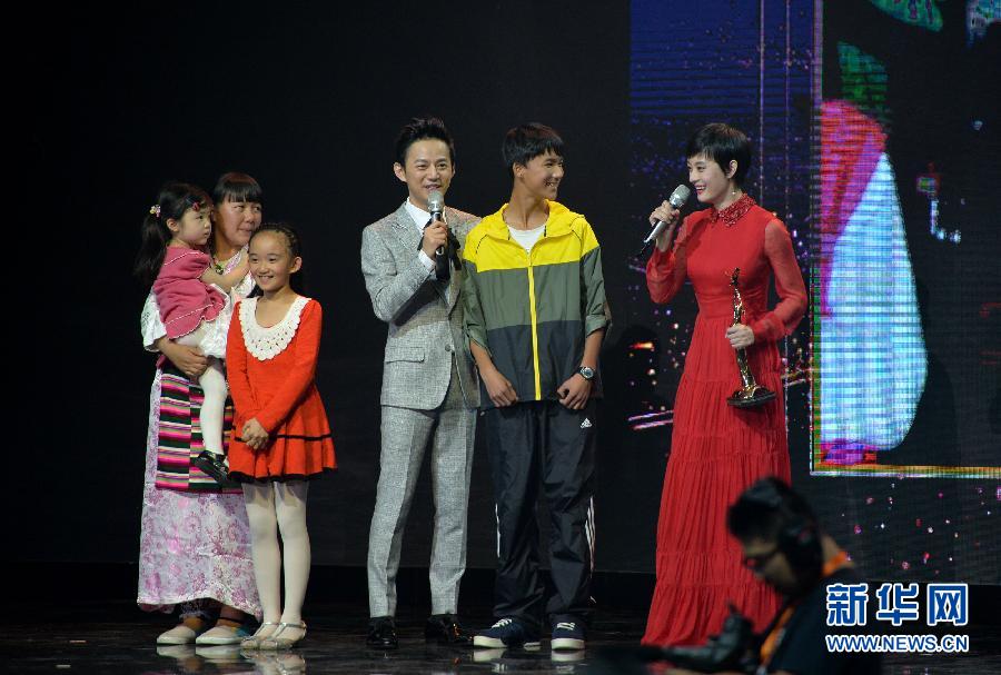 10月12日,孙俪(右一)荣获“最具人气女演员奖”。 10月12日,第十届中国金鹰电视艺术节暨第27届中国电视金鹰奖颁奖晚会在长沙举行,颁奖晚会现场揭晓“观众喜爱的电视剧男女演员”各4位,其中“最具人气男、女演员奖”由全国观众投票产生,张嘉译和孙俪分别获此殊荣。随着各大奖项的揭晓,第十届中国金鹰电视艺术节在长沙落下帷幕。新华社记者 白禹 摄