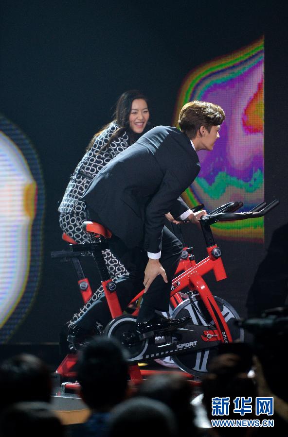 10月12日,颁奖嘉宾刘雯(左后)和李易峰在颁奖现场以特殊方式开奖。 10月12日,第十届中国金鹰电视艺术节暨第27届中国电视金鹰奖颁奖晚会在长沙举行,颁奖晚会现场揭晓“观众喜爱的电视剧男女演员”各4位,其中“最具人气男、女演员奖”由全国观众投票产生,张嘉译和孙俪分别获此殊荣。随着各大奖项的揭晓,第十届中国金鹰电视艺术节在长沙落下帷幕。新华社记者 白禹 摄
