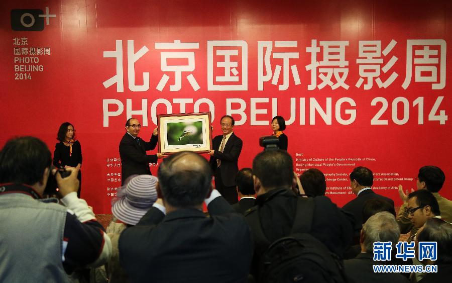 10月12日,参加摄影周开幕式的嘉宾在活动现场互赠照片。当日,由文化部、北京市政府主办的“北京国际摄影周2014”摄影主题活动在中华世纪坛开幕。本届摄影周期间将举行《华赛十年国际新闻摄影比赛获奖作品回顾展》《中国梦—人民生活与社会变迁》等展览,并举办图书角计划、摄影嘉年华、摄影技术体验坊、专家见面会等活动。新华社发(李方宇 摄)