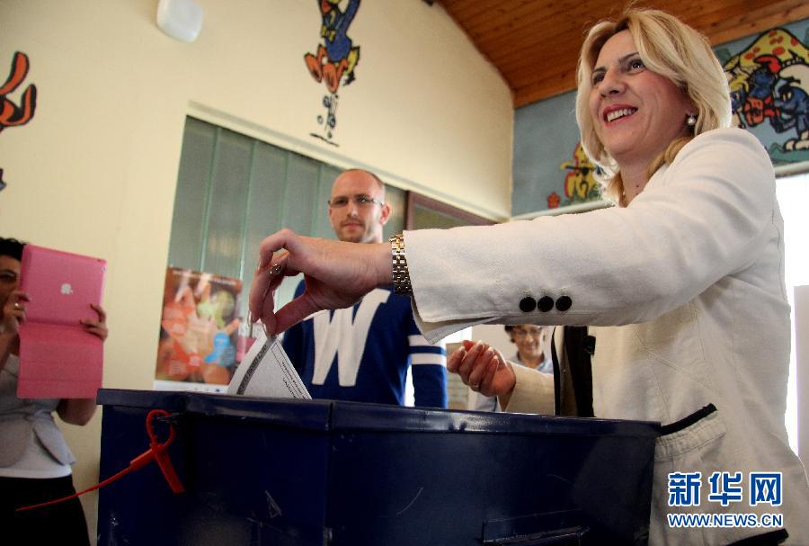10月12日,在波黑塞族共和国首府巴尼亚卢卡,波黑塞族共和国总理热莉卡·茨维亚诺维奇(右)在一处投票站投票。波黑12日上午开始举行全国大选,选民投票选出波黑主席团(总统)3名成员和波黑各级议会议员。波黑大选每四年一次,上一次大选2010年举行。新华社发(鲍里斯拉夫·则林亚摄)