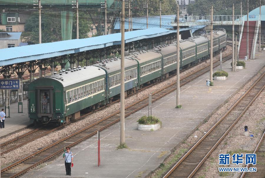 10月12日,7102次绿皮火车停靠在南京中华门火车站一号站台上。拥有78年历史的南京中华门火车站将于10月14日停止办理客运业务,届时,途经该站的旅客列车将不再停靠,售票处等和客运有关的业务也将同步停办,中华门火车站只办理货运业务。南京中华门火车站是中国著名的近现代铁路历史建筑,于1936年投入使用。 新华社发(王新 摄)