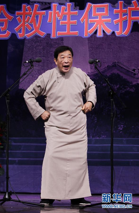 10月12日,表演艺术家赵连甲在表演山东快书《鲁达除霸》。 新华社记者高静摄
