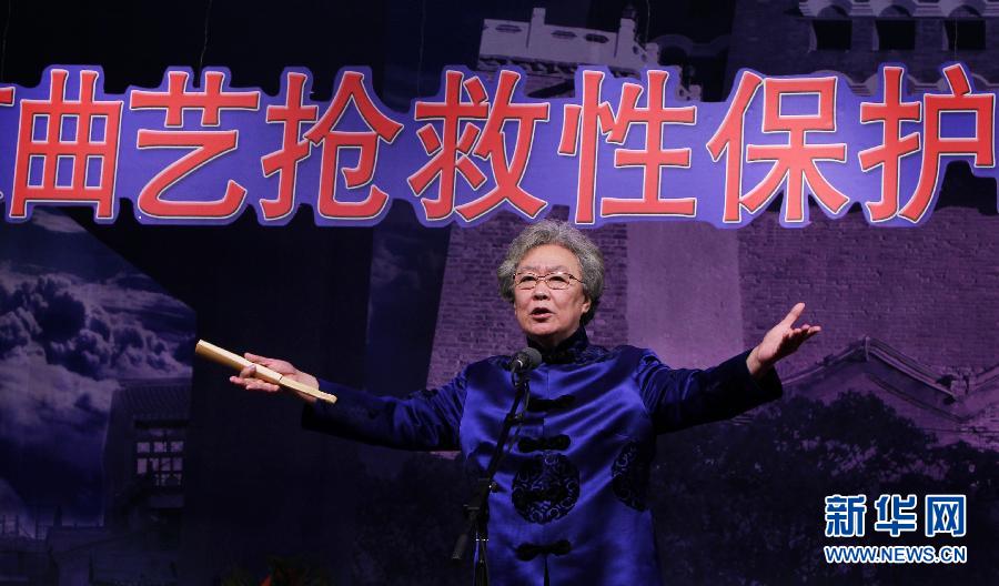 10月12日,评书表演艺术家连丽如在表演评书《三国演义》选段。 新华社记者高静摄