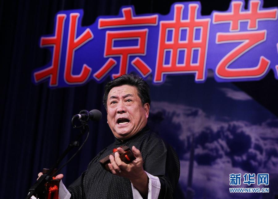 10月12日,全国快板书艺术委员会会长张志宽在表演快板书《劫刑车》。 新华社记者高静摄