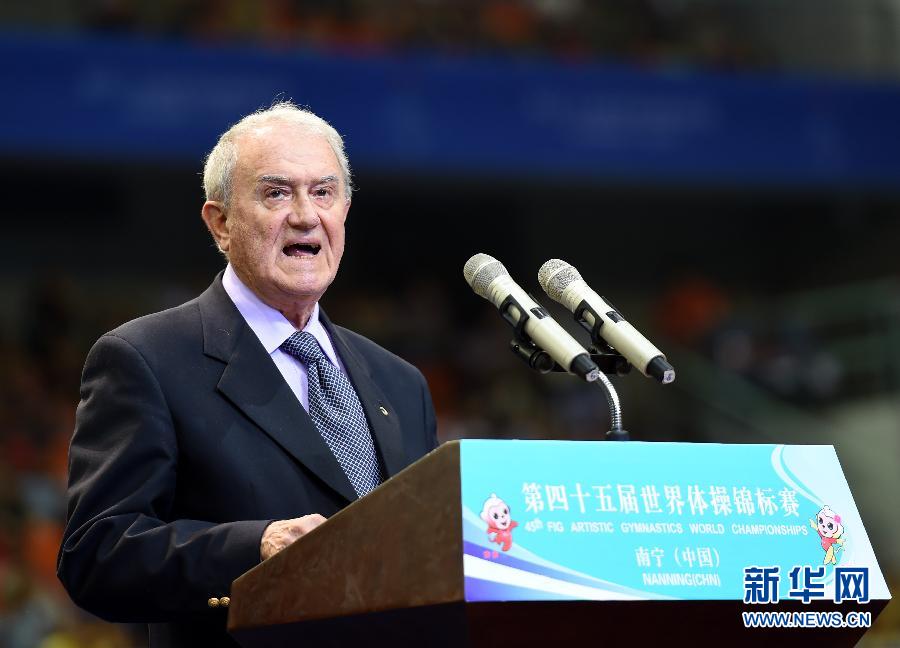 10月12日,演员在闭幕式上表演。当日,第45届世界体操锦标赛在广西体育中心体育馆举行闭幕式。 新华社记者肖艺九摄