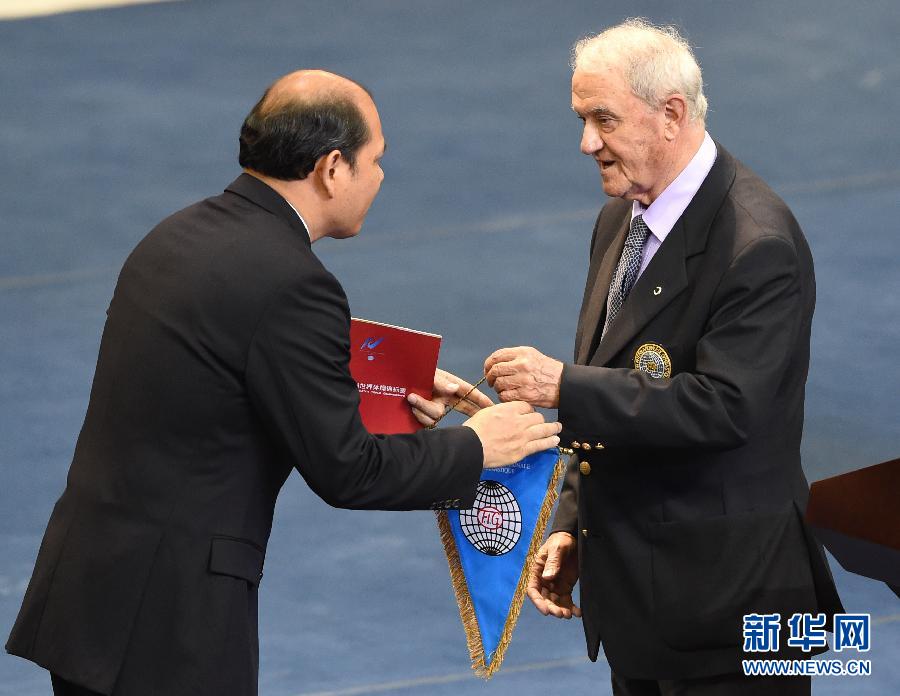 10月12日,演员在闭幕式上表演。当日,第45届世界体操锦标赛在广西体育中心体育馆举行闭幕式。 新华社记者周华摄