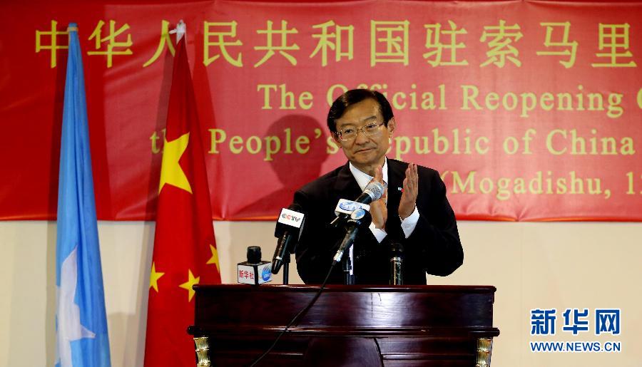 10月12日,在索马里首都摩加迪沙,中国外交部副部长张明在复馆仪式上致辞。当天,中华人民共和国驻索马里联邦共和国大使馆复馆仪式在索马里首都摩加迪沙举行。1991年索马里陷入内战后,中国驻索马里大使馆撤离。2012年,索马里和平进程取得突破性进展,成立21年来首个正式政府和议会。为进一步推动中索友好合作关系发展,中国政府今年6月宣布决定恢复驻索马里使馆。新华社记者张晨摄