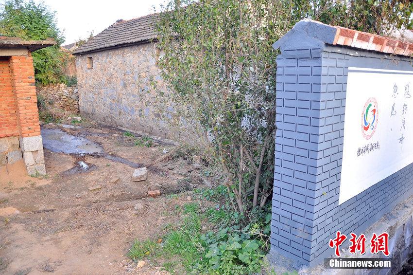 2014年10月13日,山东省日照市岚山区高兴镇前唐家河村,一条穿村而过的乡村公路两侧建起了数百米“遮羞墙”。“遮羞墙”上绘满了古典诗词和工笔画。这处鲜亮整洁的“遮羞墙”与墙内参差不齐、破败的房屋形成了鲜明的对比。 图片来源:CFP视觉中国