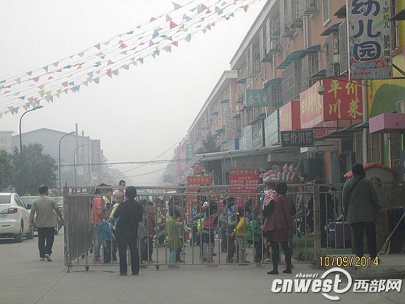 据幼儿园保安说,园内目前托管有100多个孩子,10多名老师,每个月的托管费用是540元,门口的围栏主要供孩子室外活动使用,“每天上午10点多和中午睡起来,老师就带着孩子在外面锻炼身体、自由活动。”图为网友贴出的照片中,启智幼儿园在门前道路上拉开一圈围栏,围栏里有孩子正在做操。 图片来源:西部网
