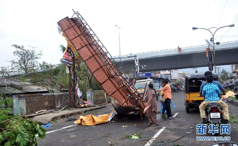这是10月13日在印度维瑟克伯德讷姆拍摄的强旋风“胡德胡德”造成的损坏。强旋风“胡德胡德”12日在印度东南部沿海地区登陆,至13日已造成至少24人死亡。 新华社发