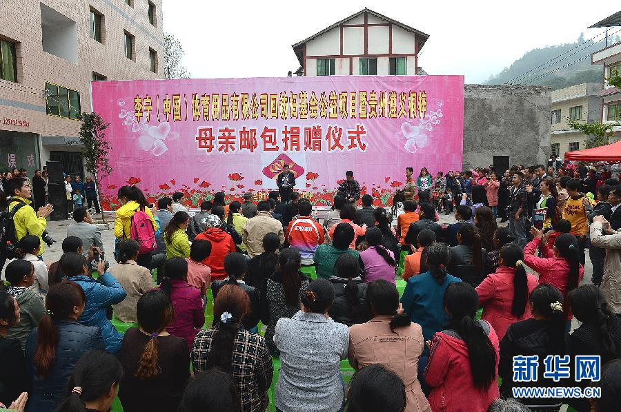 这是母亲邮包捐赠仪式现场(10月13日摄)。当日,中国妇女发展基金会与李宁(中国)体育用品有限公司一同开启贵州西部行公益回访、考察、捐赠等活动。为支持中国妇基会“母亲邮包”项目,李宁公司向贵州革命老区桐梓县贫困母亲捐赠10万元母亲邮包和价值20多万元的物资,向楚米镇八一村的80位贫困母亲发放母亲邮包等物品,并走进贫困母亲家中慰问。据中国妇基会副秘书长张建岷介绍,截至2014年9月,贵州省共接到社会各界捐赠的“母亲邮包”项目款370多万元,“母亲邮包”2.7万多个。“母亲邮包”项目旨在帮助解决贫困母亲生活用品匮乏问题,提高和改善贫困母亲生活质量,传递社会温暖,促进社会和谐。新华社记者 何俊昌 摄