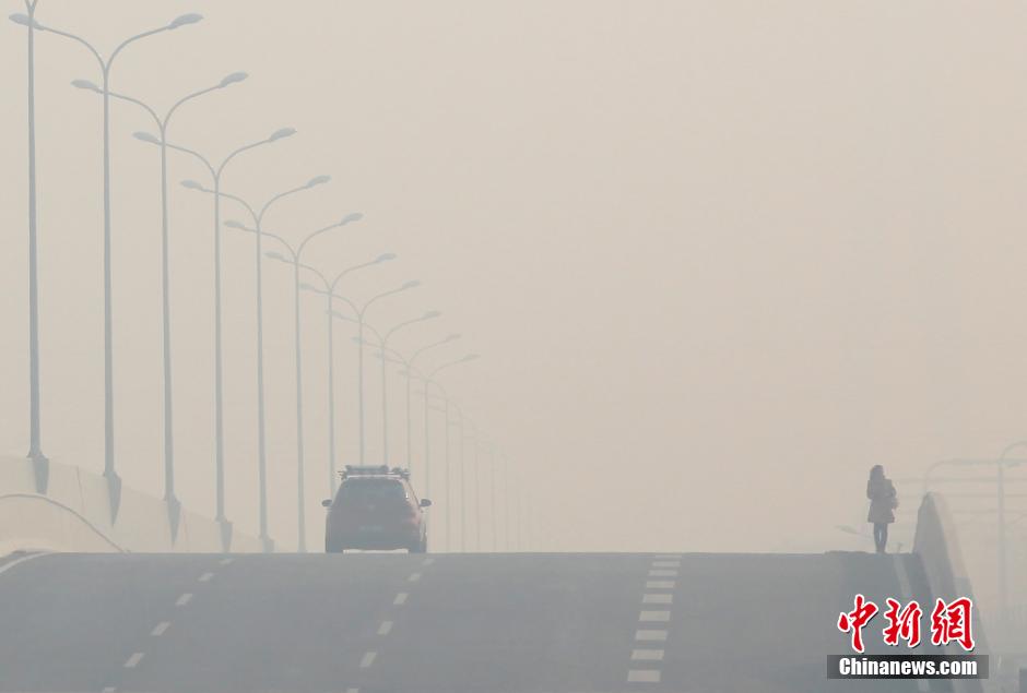 10月14日,位于中国东北的吉林省遭遇“霾伏”,空气污染严重。早上8时,吉林省省会长春9个PM2.5监测点中,有两个监测点为重度污染,其余全为最高级别的严重污染。 中新社发 蒋盛松 摄
