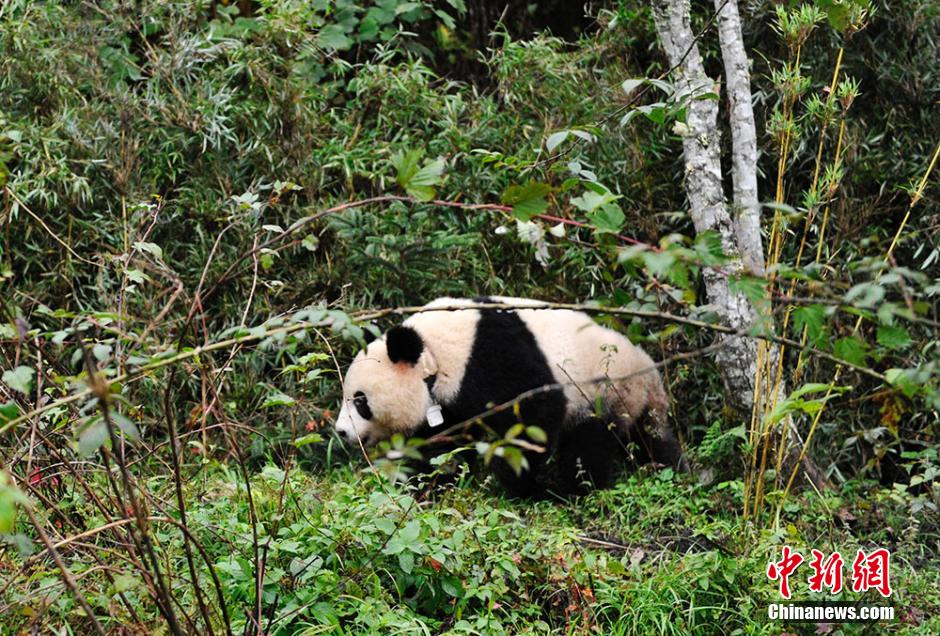 10月14日,由国家林业局和四川省人民政府共同举办的大熊猫“雪雪”放归自然活动在四川雅安栗子坪国家级自然保护区举行,2岁零2个月的大熊猫“雪雪”走出放归笼,回归大自然。这是继大熊猫“祥祥”、“淘淘”和“张想”放归之后,我国放归的第四只人工繁育的大熊猫。安源 摄
