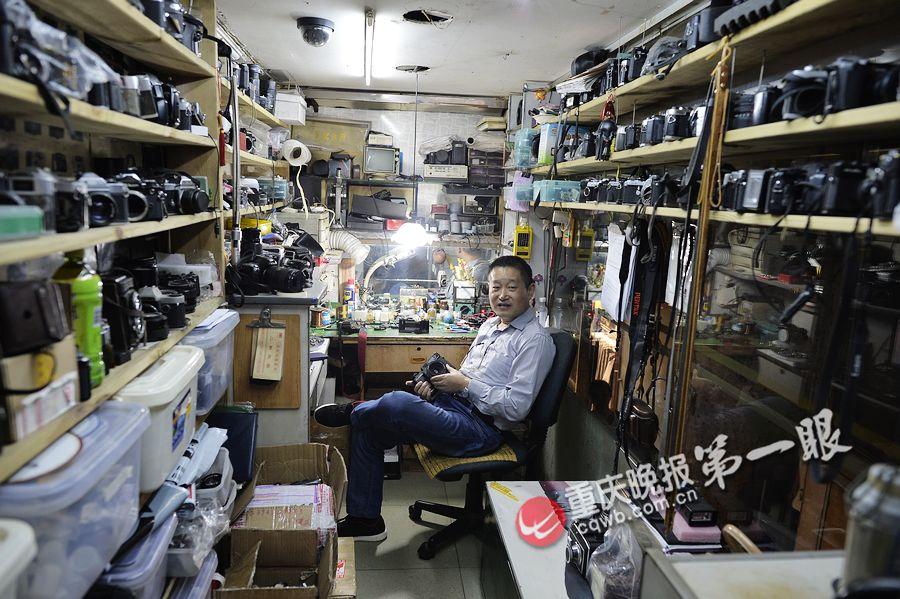 在重庆三峡广场,有一家专门维修老式相机的铺子,店铺老板陈亚军,在这里一待便是34年。