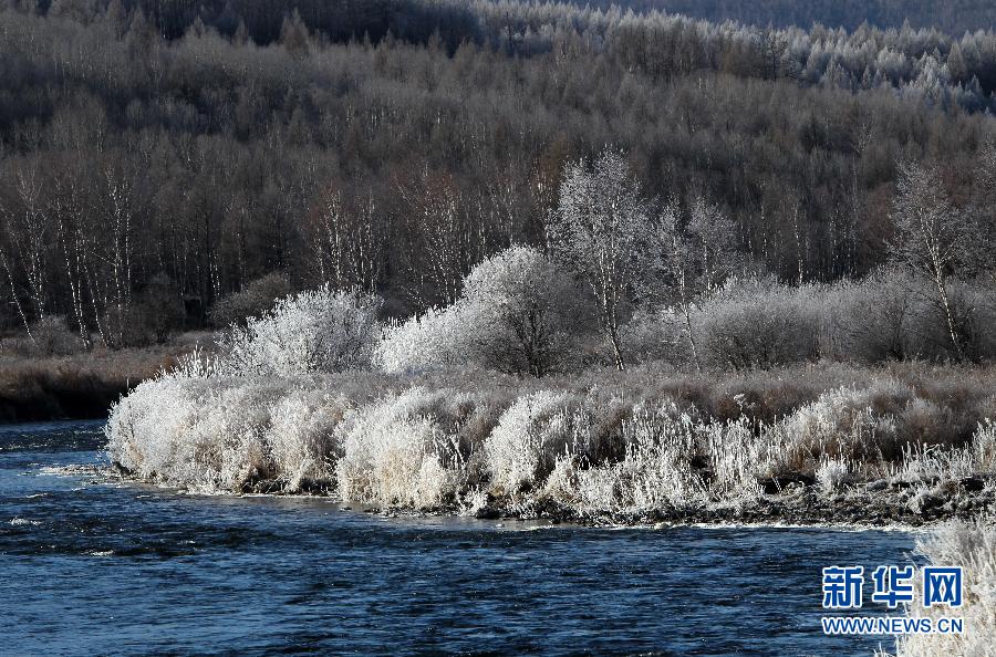 内蒙古阿尔山雾凇美景(10月13日摄)。位于大兴安岭山脉西南麓的内蒙古兴安盟境内的阿尔山国家森林公园,有着神奇壮观的火山地貌和一望无际的浩瀚森林,深秋阿尔山的美丽令人沉醉。新华社发