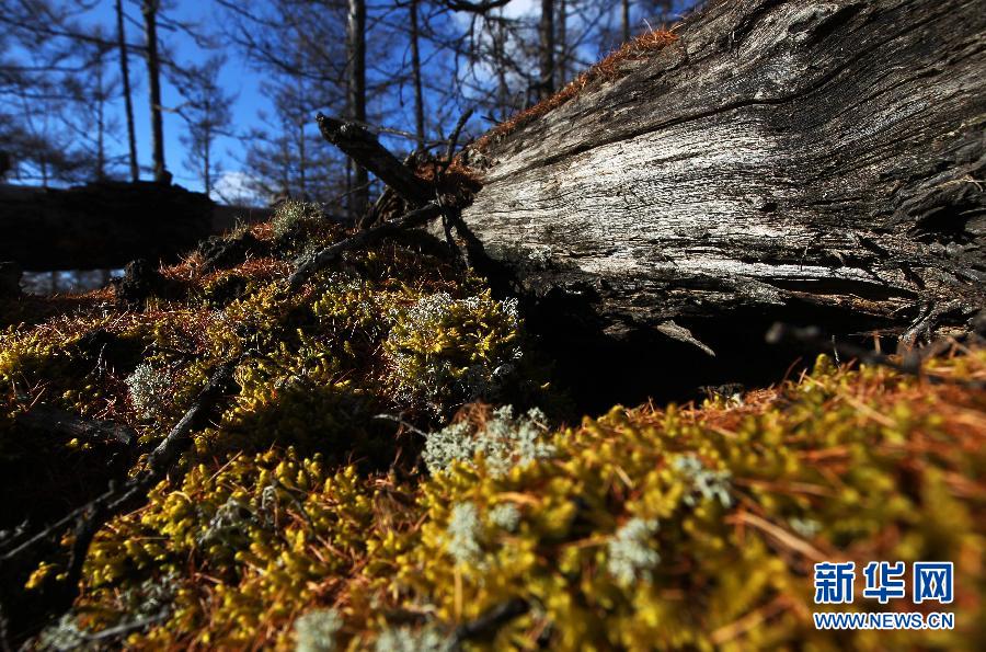 内蒙古阿尔山国家森林公园中的苔藓和枯木(10月12日摄)。位于大兴安岭山脉西南麓的内蒙古兴安盟境内的阿尔山国家森林公园,有着神奇壮观的火山地貌和一望无际的浩瀚森林,深秋阿尔山的美丽令人沉醉。新华社发
