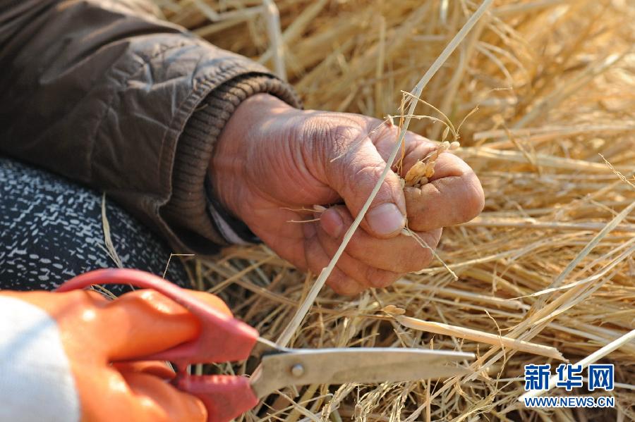 10月14日,在吉林省伊通满族自治县,一位农民在收获后的稻田里拾稻穗。据该农民介绍,劳作三天拾到的稻穗够全家五口人一周的口粮。新华社记者 张楠 摄