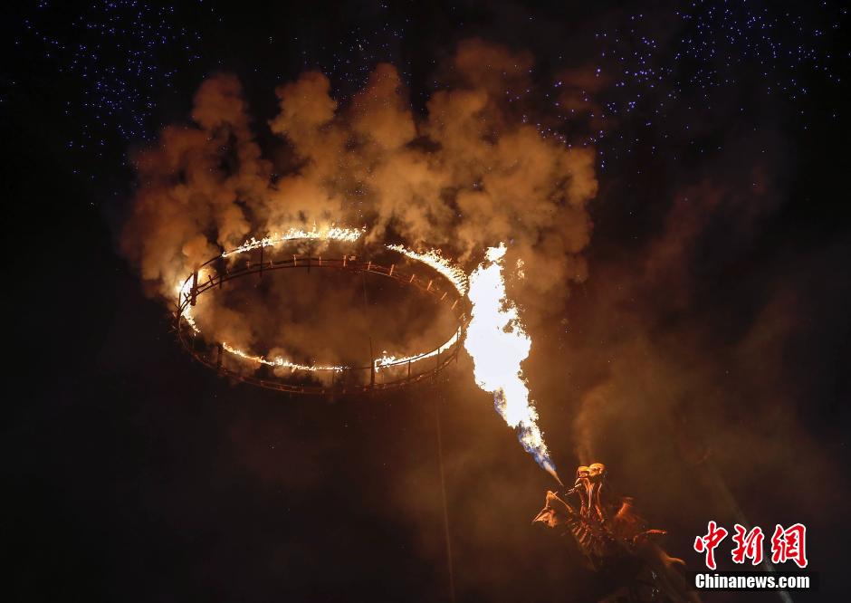 10月19日,北京国家体育场外广场,法国“龙马”巡游举行了闭幕演出,图为表演精彩瞬间。 中新社发 张浩 摄