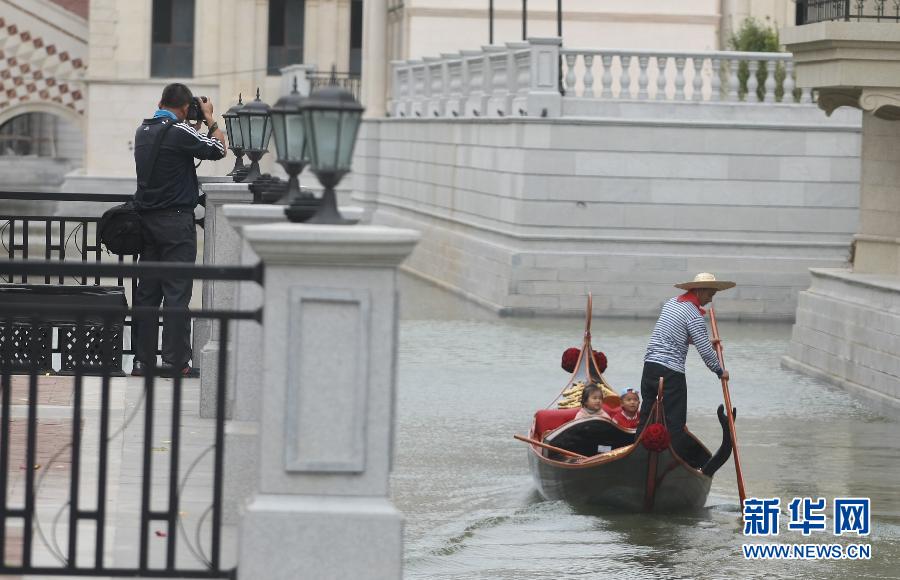 10月19日,游船在大连东港商务区东方水城运河里穿行。当日,大连东港商务区东方水城运河开闸放水,4公里长的人工运河与两岸的欧式建筑交相呼应,为大连再添新景观。 新华社发(徐德武 摄)