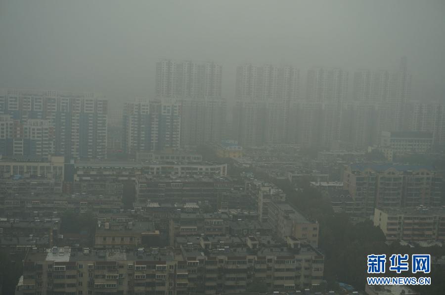 10月19日,济南北部城区隐现在雾霾之中。 10月20日,山东气象台发布大雾黄色预警信号,鲁西南、鲁西北和鲁中的北部地区出现了能见度小于500米的浓雾,其中聊城和菏泽的部分地区能见度小于200米。受北方大面积雾霾天气的影响,山东地区近日持续雾霾。新华社记者 冯杰 摄