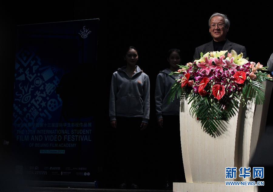 10月19日,影展名誉主席谢飞教授在开幕式上致辞。当日,第13届北京电影学院国际学生影视作品展开幕。本届影展共收到来自53个国家和地区的900多部参展影片,参赛者遍布全球近百所影视院校。通过严格的筛选和初评,83部入围短片将在北京电影学院进行为期一周的展映,评选出国际学生作品奖金银铜奖等21项大奖。新华社记者高静摄