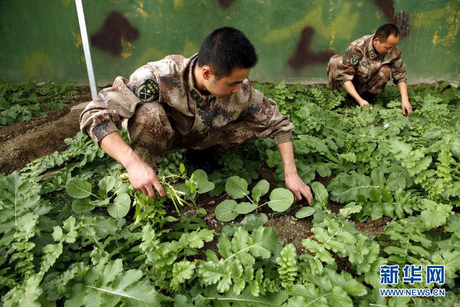 川藏兵站部某兵站的官兵在自建的蔬菜大棚内种植蔬菜(10月16日摄)。成都军区联勤部川藏兵站部副部长王玉庆在接受新华社记者采访时表示,作为一名在川藏兵站部服役36年的老兵,有幸见证了进藏运输发生的四个可喜变化:一是路况越来越好;二是装备越来越好;三是食宿越来越好;四是安全形势越来越好。 新华社记者 潘旭 摄