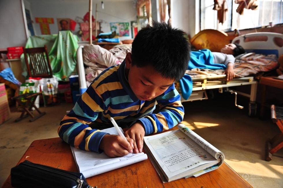 王荣在床边下意识的翻了一下作业本,王荣他告诉记者很想回到学校。