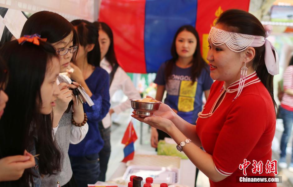 南京高校举办国际文化节 中外大学生同跳“小苹果”