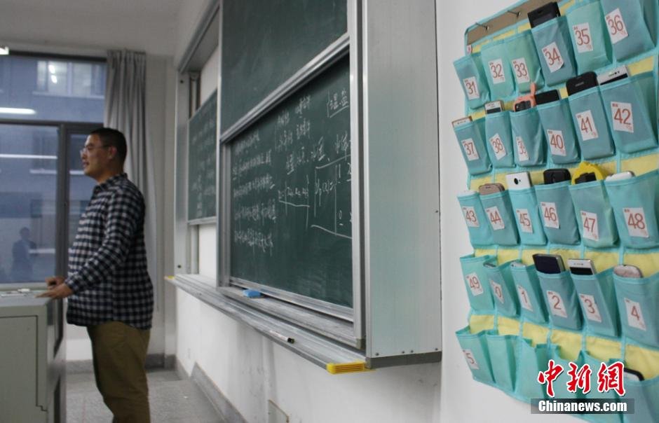 “小学上课费嘴,初中上课费笔,高中上课费脑,大学上课费流量。”虽属调侃,但也反映出目前大学生上课的普遍状况。10月21日,记者在江苏盐城师范学院城市学院却看到一个“无手机课堂”,学生上课前将手机关机或者调成静音,放在教室门口统一的袋子里,下课后再自行取走。“把手机统一存放起来,让同学们改掉上课爱玩手机的坏习惯,大家上课专心听讲,也和老师多了互动。”学生於帆非常赞同学校的做法。盐城市师范学院城市学院党总支副书记、副院长王广飞表示,现在很多学生过分依赖新媒体,沉浸在个人圈子里,上、下课都不喜欢与别人互动沟通,通过统一收存这种方式,让学生首先在课堂专心学习,有更多的时间和老师互动起来。谷华 摄