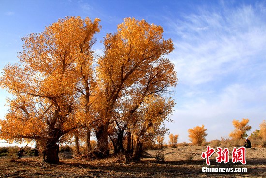 深秋十月,甘肃省敦煌西湖国家级自然保区内胡杨林迎来一年中最美的时节。 张晓亮 摄