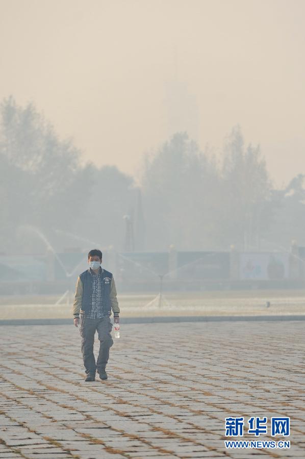 10月22日,在吉林长春,一名市民戴口罩出行。当日,长春市遭遇雾霾天气,当日7时实时空气质量指数(AQI)为473,属严重污染等级。 新华社记者 张楠 摄