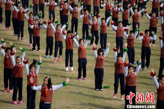 10月22日,苏州国际外语学校小学部1340名小学生齐聚学校操场,以欢跳“小苹果”舞蹈的方式,为即将参加学校第十七届体育节之田径运动会比赛的运动员鼓气加油,展现健康向上、活力朝气的青春风采。