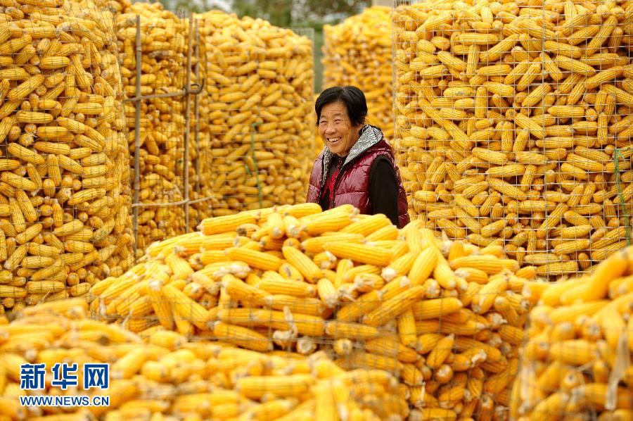 10月23日,河北省南皮县刘八里乡刘显吾村村民在查看家门口摆放的玉米。金秋时节,位于“渤海粮仓科技示范工程”项目区的河北省南皮县40万亩玉米等秋粮喜获丰收,农家大院房前屋后到处可见农民们晾晒、储存和销售玉米的身影。近日,河北省科技厅组织玉米测产专家组,对“渤海粮仓科技示范工程”南皮示范区玉米进行了田间测产。测产结果表明,百亩核心区平均亩产达到657.54公斤、千亩示范田平均亩产达到636.72公斤、3个万亩示范方平均亩产达到585.47公斤,实现了大旱之年玉米稳产略增的理想结果。新华社记者 牟宇 摄