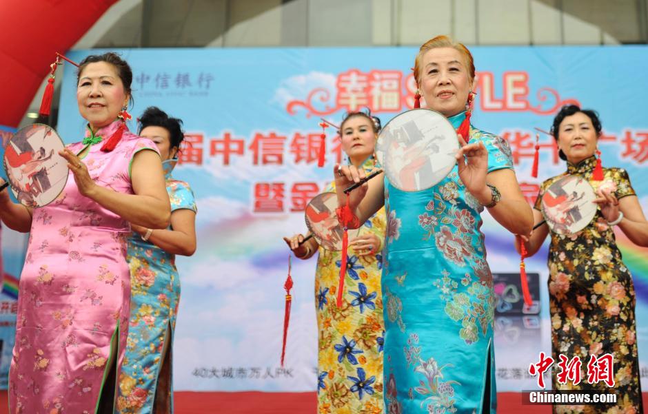 10月23日,山西太原启动广场舞大赛,年届七旬的老人们热情起舞,积极参与。在中国,广场舞是一项遍布极广的舞蹈艺术,从一线城市的广场到乡间小村的空地,都活跃着各式各样的广场舞蹈,参与者以中老年人为主,群体庞大。中新社发 韦亮 摄