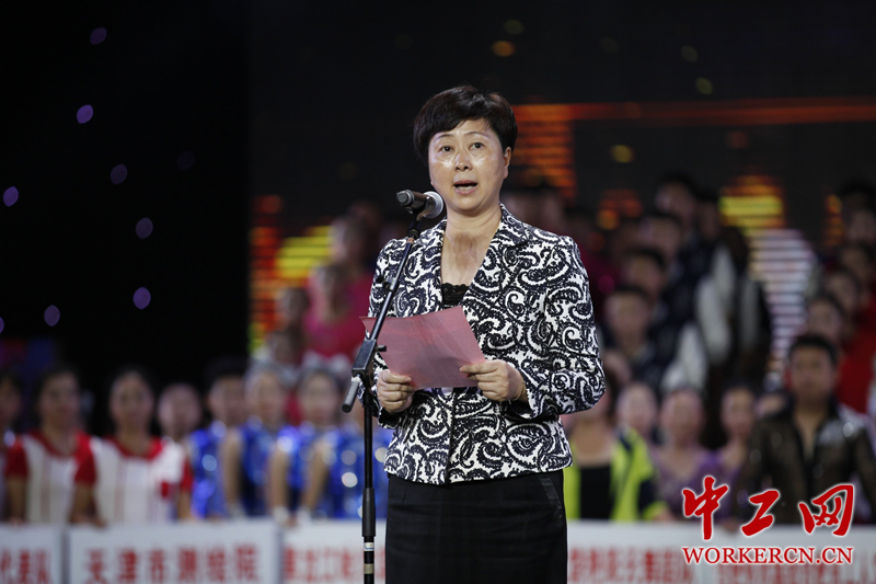 10月24日,由中国职工文化体育协会、中国社会工作协会、中国下一代教育基金会、中国老年保健协会主办的“2014全国全健排舞大赛”在浙江桐乡开幕。图为桐乡市委副书记蒋惠玲致辞。中工网记者韩靖摄